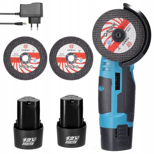 ЭЛЕКТРИЧЕСКАЯ УГЛОВАЯ ШЛИФОВАЛЬНАЯ МАШИНА 12 В 19500 ОБ/МИН + 2 АККУМУЛЯТОРА + ДИСКИ + КЛЮЧ