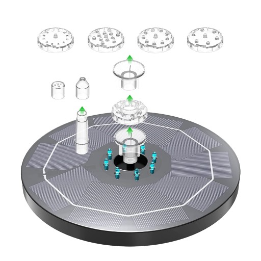 ⛲️ 🐦️ Solarna fontanna LED 3W Fontanna do kąpieli dla ptaków z 8 diodami LED i 6 dyszami