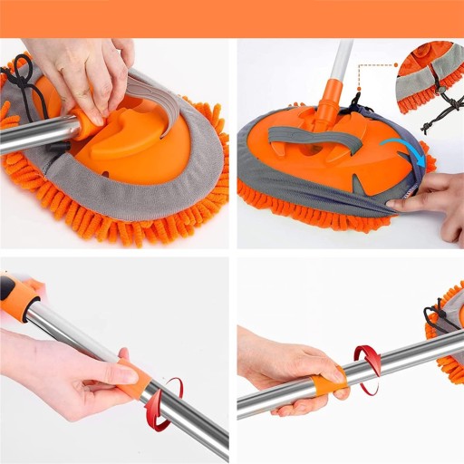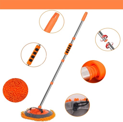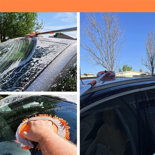 ⭕Bardzo długa szczotka do mycia samochodu o długości 157 cm z łatwością dotrze do dachu samochodu i innych wyższych miejsc. Głowica mopa z możliwością regulacji w zakresie 180 stopni zapewnia większą elastyczność podczas mycia samochodu i zapewnia łatwe wykonanie pełnego czyszczenia.
