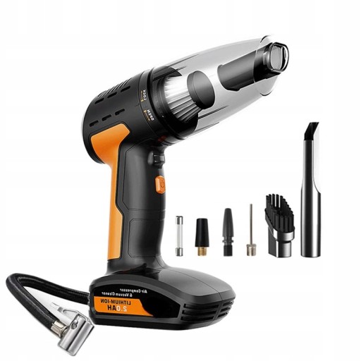 -Wyposażony w kompletny zestaw nadmuchiwanych dysz, które mogą służyć do pompowania opon, gumowych łodzi, poduszek powietrznych, dmuchanych zabawek, piłek i wielu innych celów.
