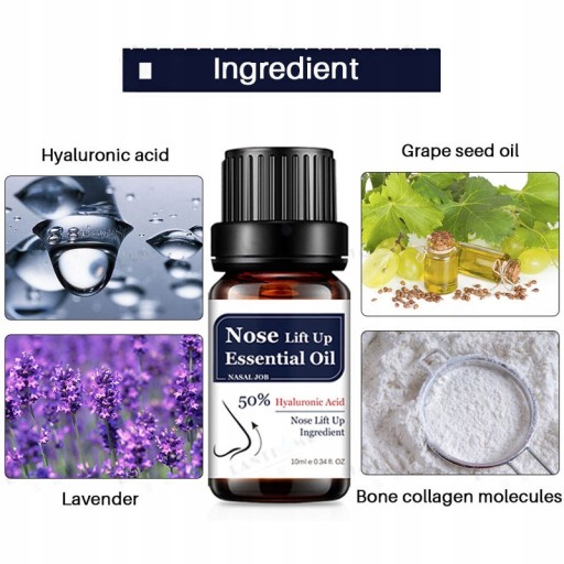 Ten olejek do masażu może rozwiązać wiele problemów z nosem i zapewnić różnorodne składniki odżywcze do podnoszenia i kształtowania nosa. Wszystkie składniki spełniają normy bezpieczeństwa, nie zawierają syntetycznych dodatków, konserwantów, barwników i są bezpieczne w użyciu. Humanizowany design, lekki, łatwy w użyciu, łatwy do przenoszenia i użytkowania.