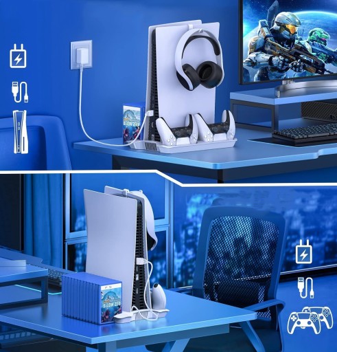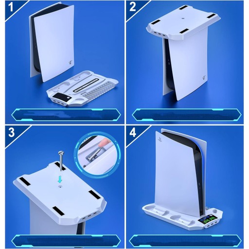 ✅ Kompatybilność z wersjami Slim PS5 Digital i PS5 DISC - Ten stojak chłodzący ps5 uwzględnia zarówno cyfrową edycję konsoli ps5, jak i wersję dyskową konsoli ps5, jest również wyposażony w specjalny cyfrowy pasek do smukłej konsoli cyfrowej ps5 i śrubę zabezpieczającą do mocowania systemu konsoli ps5, obie sprawiają, że stacja dokująca jest bardziej bezpieczna i zrównoważona, kompaktowy rozmiar pomaga zaoszczędzić miejsce i zwiększyć wydajność przestrzeni w pokoju gier. Idealny sposób na bezpieczne przechowywanie i wyświetlanie wszystkich akcesoriów i konsoli PS5.