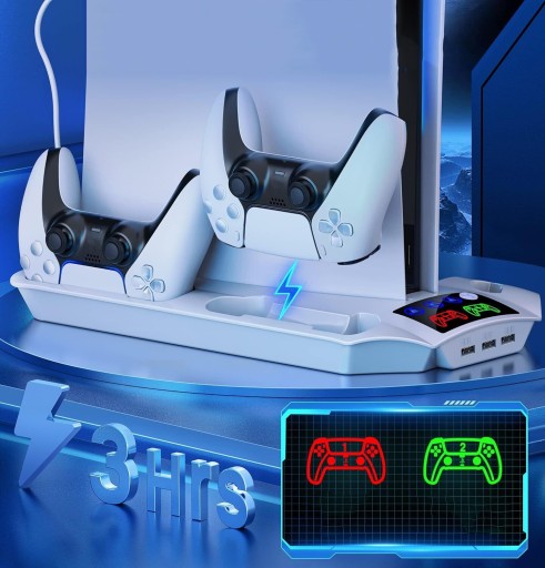 ✅ 3 dodatkowe porty USB - Podstawka posiada 3 dodatkowe porty USB, które mogą być używane do ładowania innych kontrolerów PS5, zestawu słuchawkowego PS5, kamery PS5 HD lub innych urządzeń USB.