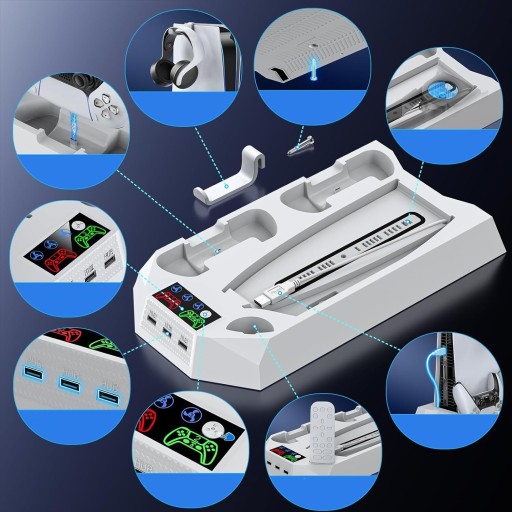 ВЕРТИКАЛЬНАЯ СТАНЦИЯ ОХЛАЖДЕНИЯ И ЗАРЯДКИ ДЛЯ КОНСОЛИ PS5, МНОГОФУНКЦИОНАЛЬНАЯ, СО СВЕТОДИОДОМ