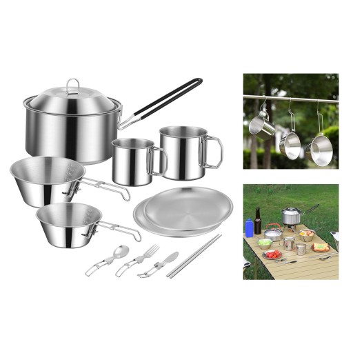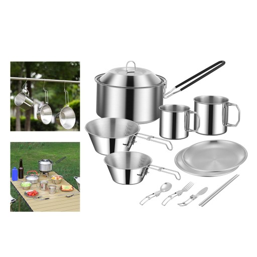 Materiał: Naczynia kempingowe wykonane są z wysokiej jakości stali nierdzewnej, która jest lekka i trwała.