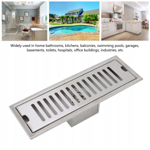 3. Materiał ze stali nierdzewnej: prostokątny odpływ podłogowy wykonany jest z wysokiej jakości stali za pomocą 304, powierzchnia odpływu jest szczotkowana, aby zapobiec korozji, zadrapaniom i rdzy, i jest trwała.