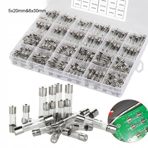 - 5*20mm: 0.25A, 0.5A, 1A, 2A, 3A, 4A, 5A, 8A, 10A, 12A, 15A, 20A (po 20 sztuk).