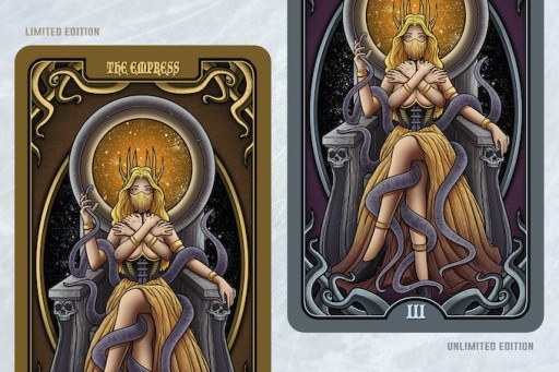The deck is composed of 78 cards including the Major Arcana and Minor Arcana. Each of the Major Arcana is based on a character or creature from Lovecraft’s universe in connection with classic RWS tarot references.