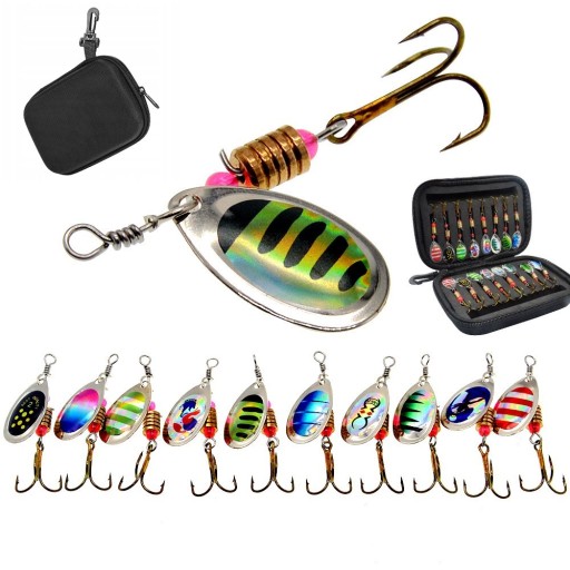 - 16-częściowe ważone metalowe przynęty wahadłowe ułatwiające rzucanie.