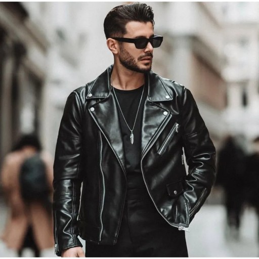 KURTKA MĘSKA WIOSENNA JESIENNA SKÓRZANA MOTOCYKLOWA RAMONESKA ELEGANCKA