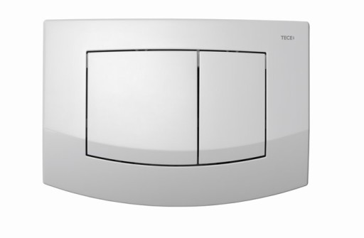 Przyciski spłukujące do spłuczek TECE uruchamiane z przodu lub od góry. Płytka z tworzywa sztucznego, przyciski uruchamiające wyposażone w gumowe odboje z obu stron. W komplecie łączniki (popychacze) i wkręty montażowe. Kompatybilne z płytką maskującą z koszem na kostkę czyszczącą.