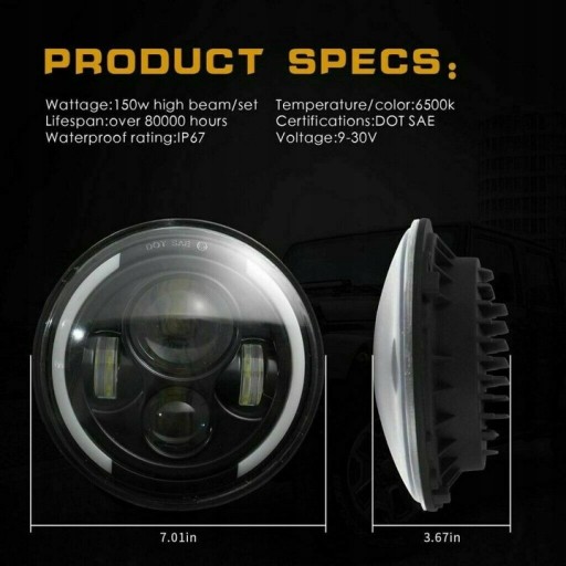 -Wysokiej jakości 7-calowy projektor motocyklowy Hi/Lo LED reflektor.