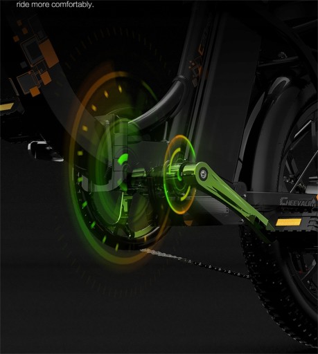 Zastosuj amortyzator z podwójną sprężyną olejową i przedni widelec z blokadą, aby zapewnić kierowcy większy komfort podczas wyboistych przejażdżek. Koło o dużej średnicy 20 cali ma dziury i drogi gruntowe, a próg zwalniający można łatwo ominąć. Szerokość opony sięga 7,6 cm, jest antypoślizgowa i odporna na wstrząsy, większa rozpiętość, większa prędkość i mniejszy wysiłek.