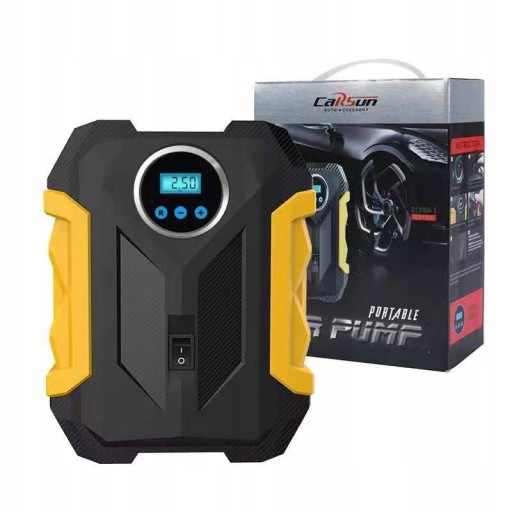 KOMPRESOR / SAMOCHODOWY / SPRĘŻARKA / POMPKA 35l/min Z LATARKĄ I WYŚWIETLACZEM LCD z ZESTAWEM AKCESORIÓW