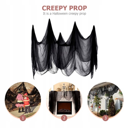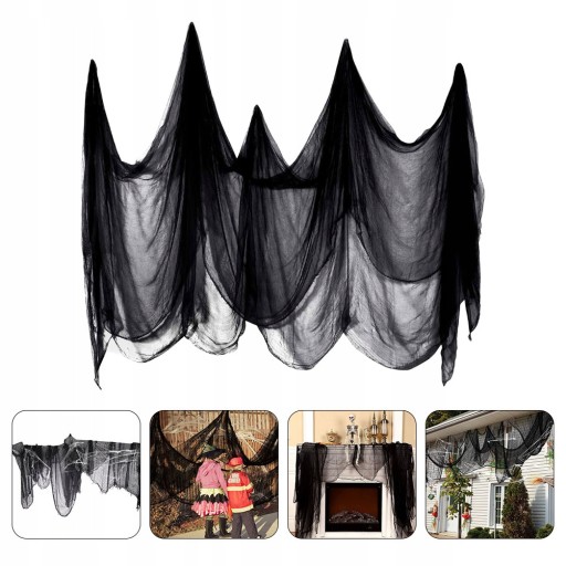 Ta postrzępiona i podarta czarna gaza może być wykorzystana do dekoracji holi, zasłon prysznicowych, ganków, tarasów itp. Przerażająca tkanina stanowi świetne tło na imprezę Halloween! Idealny do upiornego nastroju, zapewniający najlepszą atmosferę do przerażających scen i kolorowych zdjęć! Możesz przyciąć go na żądaną długość, oderwać lub przyciąć w dowolny kształt.