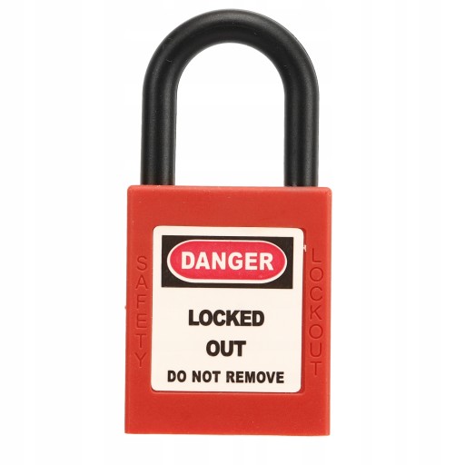 2. Nylonowa kłódka: Belka blokady wykonana jest z nylonu, który może być stosowany w przypadku izolacji elektrycznej, zapobiegając porażeniu prądem i zapewniając wytrzymałość.