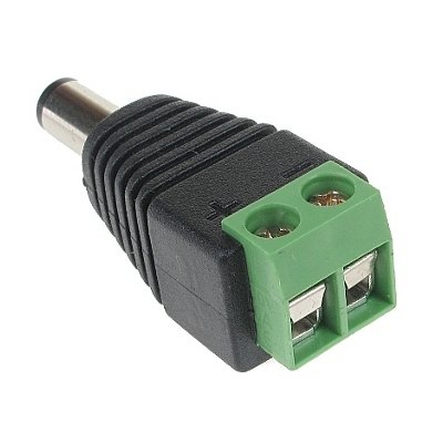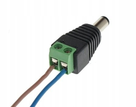 Szybkozłącza na standardowe gniazdo do zasilania kamery. Aby zamontować wtyk wystarczy jedynie odizolować przewody, wcisnąć w zaciski kablowe, a na końcu dokręcić dwa wkręty wkrętakiem krzyżakowym lub płaskim.