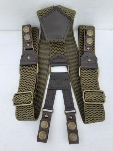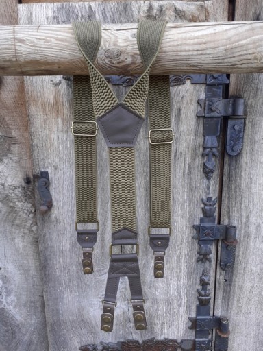 WYKONANE Z DOBREJ JAKOŚCIOWO GUMY SZELKOWEJ.POSIADAJĄ REGULACJĘ DŁUGOŚCI A SOLIDNE SZLUFKI DOBRZE UTRZYMUJĄ SPODNIE NA PASKU.WSTAWKI WYKONANE SĄ Z WYSOKO GATUNKOWEJ SKÓRY LICOWEJ KOLORU BRĄZOWEGO DZIĘKI TEMU SZELKI BĘDĄ SŁUŻYŁY PRZEZ DŁUGI CZAS.STARE ZŁOTO KOLOR METALOWYCH RAMEK,NAPY,NITÓW,REGULATORÓW.GUMA SZELKOWA BRĄZOWA SZEROKA NA 4 CM.ROZCIĄGAJĄCA SIĘ NA 170 CM.SZLUFKI SKÓRZANE PASUJĄ NA SZEROKOŚĆ PASA OD 3 CM DO 4 CM.
