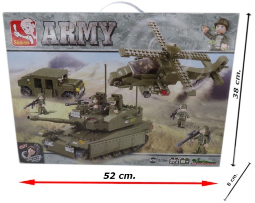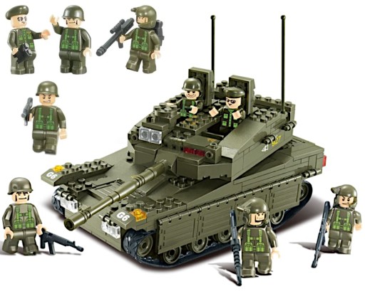 Klocki Czołg MERKAWA + HELIKOPTER +JEEP HAMER + siedem FIGUREK 683 elem.