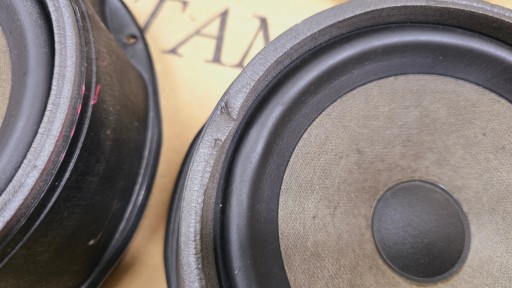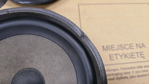 Głośniki posiadają uszkodzenia widoczne na zdjęciach w postaci odkształceń itp. dlatego cena jest niższa lecz w mojej ocenie nie wpływa to na ich działanie.