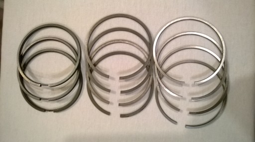 Pierścienie tłokowe SKODA 120, nowe, prawdopodobnie 1 szlif ( 72,25 ) lub nominał ( 72,00 ) , produkcja z lat 80-tych ubiegłego wieku. UWAGA ! ! ! zestaw niekompletny, brak jednego pierścienia dolnego ( olejowego ).