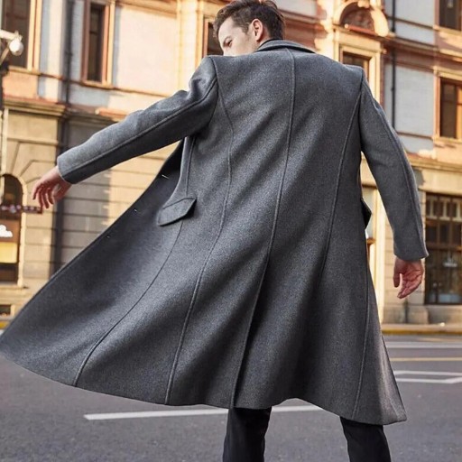 ELEGANCKI DŁUGI MĘSKI PŁASZCZ JESIENNO ZIMOWY