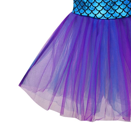 - Dół tiulowy na wzór sukienki Mała Syrenka- łuski, imitujący płetwę, wykończony fioletowym tiulem,