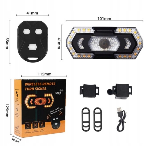 - Tryb światła: 5 typów: czerwone światło zawsze na / czerwone światło migające / czerwone światło żółte światło wszystkie migające / lewy kierunkowskaz żółty / prawy kierunkowskaz żółty