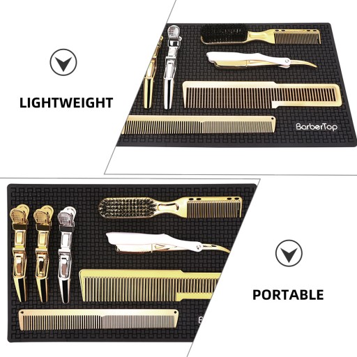 ✅Mata silikonowa do narzędzi do włosów jest niezbędna dla fryzjera lub fryzjera. silikonu, ta mata jest trwała i antypoślizgowa. Dopasuj różne narzędzia do włosów, zapewniając stabilną powierzchnię dla łatwego i precyzyjnego strzyżenia włosów. Minimalistyczny i stylowy wygląd. Dzięki tej macie skutecznie zapobiegniesz ślizganiu się narzędzi do włosów, zapewniając efektywne fryzjerskie doznania.