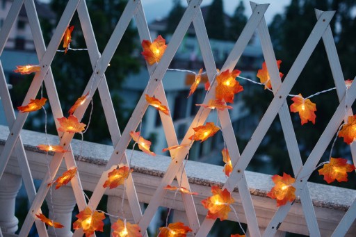 Święto Dziękczynienia, zbliża się Halloween, Udekoruj swoje życie jesiennymi lampkami z liści klonu.