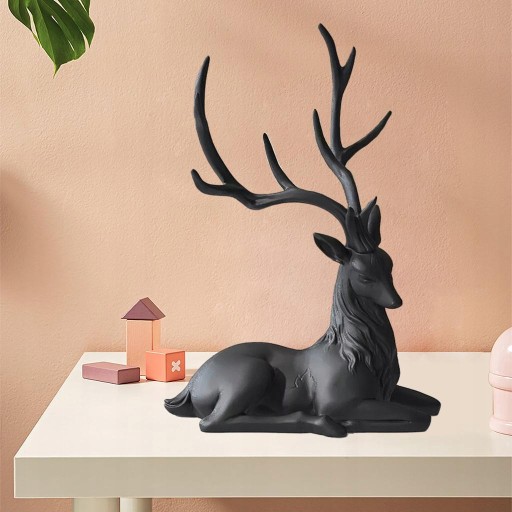 Produkcja: Linie posągu jelenia są sztucznie rzeźbione, piękno, oszczędność, rzemiosło żywiczne w kolorze czarnym może poprawić nastrój otoczenia i poprawić