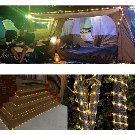 Miękkie i wodoodporne: Możesz owinąć miękką linę wokół pni palmowych lub altan, zrób to sam. Lekki sznurek ma plastikowe rurki wokół świateł, które są wykonane z trwałych materiałów odpornych na warunki atmosferyczne, przez zimowy śnieg, letnią burzę i huragany, wciąż działa jak zegar! Plastikowe rurki chronią je przed gryzieniem przez ptaki lub wiewiórki. Światła linowe nie plączą się jak niektóre inne światła, doskonale nadają się do wyznaczania ścieżki i dodawania charakteru chodnikowi.