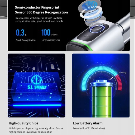 Z półprzewodnikowym czujnikiem linii papilarnych, szybki dostęp za pomocą odcisku palca z niskim poziomem fałszywego rozpoznawania, dobry dla starszych mężczyzn lub dzieci.