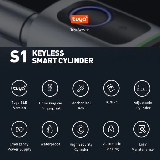 �Inteligentny zamek do drzwi Tuya obsługuje wiele metod odblokowywania, aplikację/odcisk palca/klucz mechaniczny/kartę IC, aby Twoje życie było mądrzejsze. Łatwy w instalacji, wysoki poziom bezpieczeństwa, idealny do domów, biur, hoteli, mieszkań itp.