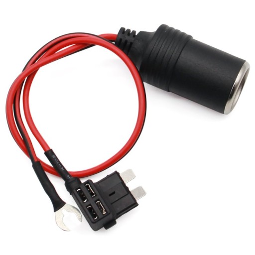 Uniwersalne gniazdo zapalniczki na przewodzie około 30cm. Pozwala na podłączenie dodatkowego gniazda zapalniczki bez fizycznych ingerencji w instalację pojazdu (podłączenie w skrzynce bezpiecznika).
