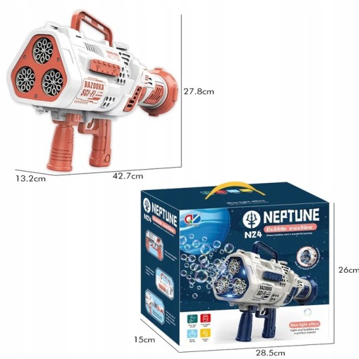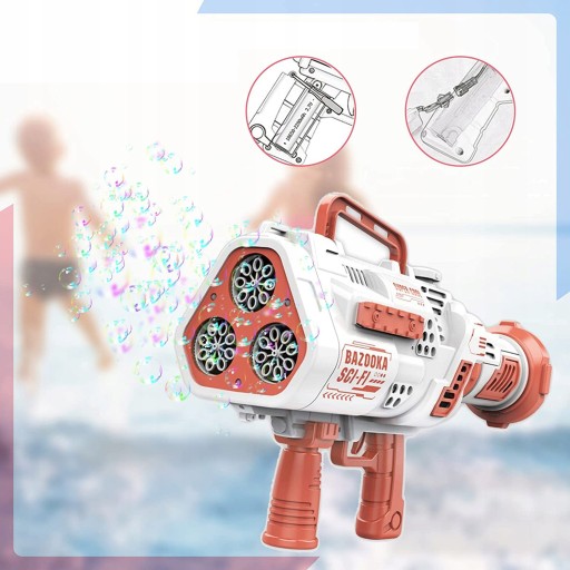 - Wystarczy lekko nacisnąć, karabin maszynowy bazooka może automatycznie rozpylać olśniewające kolorowe bąbelki, którym towarzyszą romantyczne światła.