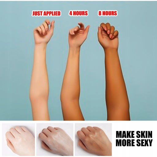 Nakładaj w małe kropki wielkości grochu wzdłuż kończyn, a następnie dobrze mieszaj się w długich okrągłych ruchach, trzymaj się go i pozwól skórze świecić jak naturalne światło słoneczne.