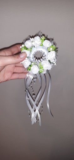 NOWA OZDOBA STROIK DO SWIECY DO KOMUNII CHRZTU. ROBIONA NA OKAPNIKU ZE WSTAZECZKAMI I PEREŁKAMI NA ŻYLKACH.