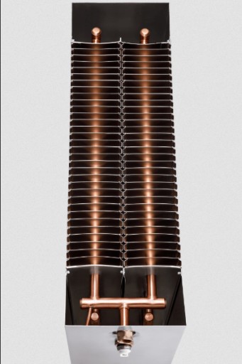 Układ wodny – zbudowany jest z miedzianych rur grzejnych rozmieszczonych poziomo wewnątrz grzejnika, spiętych na końcach pionowymi miedzianymi