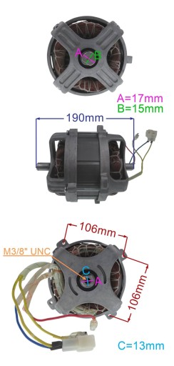 DO SILNIKA NALEŻY ZASTOSOWAĆ KONDENSATOR 20mF ORAZ ŚRUBĘ Z GWINTEM 3/8CALA UNC