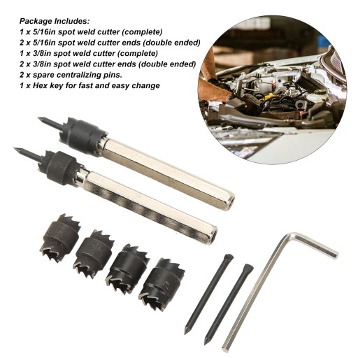 2. Praktyczne: idealne do usuwania spoin punktowych wycina rowek na obwodzie spoiny punktowej z wymiennymi głowicami, stosowanymi do wierteł 3/8 cala i 5/16 cala.