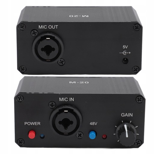 Przedwzmacniacz mikrofonowy o wysokim wzmocnieniu, zasilanie Phantom 48 V, wyjście XLR, przedwzmacniacz mikrofonowy do wzmacniaczy mikrofonów dynamicznych i pojemnościowych