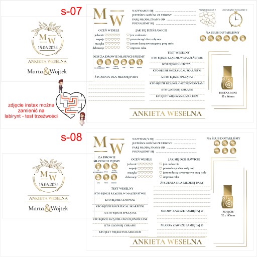- imiona oraz datę do personalizacji - według wybranego wzoru ankiety i okładki