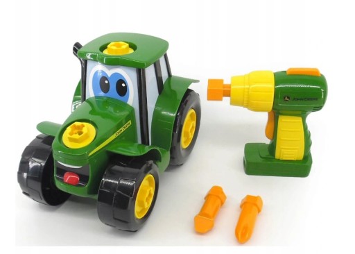Przyjazny dzieciom zestaw do zbudowania zawierający 16 elementów i wiertarkę lub zielony traktor, który możesz zabrać ze sobą wszędzie. Ten 16-częściowy zestaw zawiera wiertarkę do rozbierania i ponownego składania traktora Johnny`ego. Jest dostarczany z częściami, w tym 6 grubymi śrubami do zabawy dla małych rączek i palców. Dołączona wiertarka elektryczna jest dostarczana z 2 wymiennymi końcówkami, dzięki którym maluch będzie mógł zapoznać się z narzędziami budowlanymi i dowiedzieć się, jak można je wykorzystać w określonych sytuacjach. Ten zabawny traktor zachęca do kreatywnej zabawy i myślenia poznawczego, gdy dziecko rozkłada go na części i zastanawia się, jak złożyć ją z powrotem.