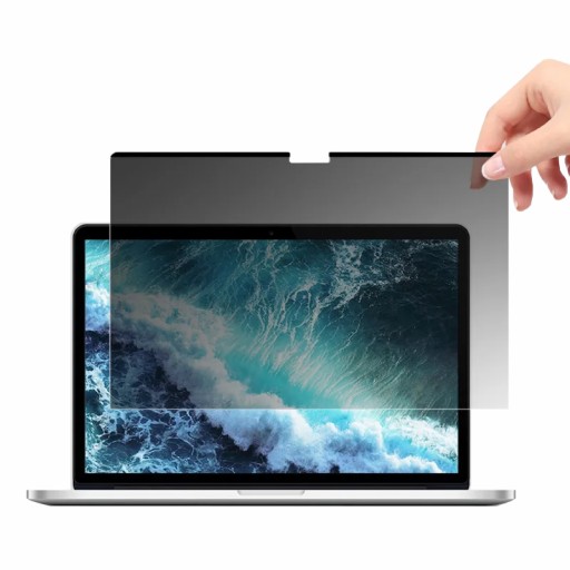 - Dzięki magnesom filtr prywatności można wygodnie i łatwo przymocować do ramki MacBooka i zdjąć z niej.