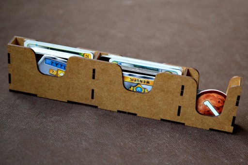 Insert pasujący do gry Terraformacja Marsa. Insert mieści wszystkie dodatki, które wyszły w wersji polskiej (wg listy poniżej). W środku są dwa podajniki na karty. Jeden podwójny i jeden pojedynczy. Ułożenie kart jest poziome z uwagi na ilość kart i ich objętość w koszulkach (na zdjęciu karty bez koszulek). Karty wejdą w koszulkach Premium o grubości maksymalnej 100 mikronów np. Premium Rebel - 90 mikronów lub Gamegenic PRIME 100 mikronów. Karty w koszulkach grubszych np. Sloyca - 110 mikronów nie zmieszczą się. Z własnego doświadczenia zalecamy Rebel Premium, dadzą Wam pełen komfort użytkowania insertu.