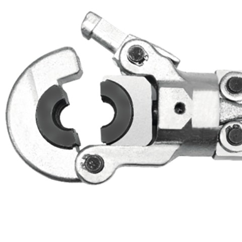 Ręczna praska hydrauliczna do zaciskania złączek na rurach PEX-AL-PEX, PERT-AL-PERT z zestawem 8 matryc. Zaciskarka wyposażona jest w siłownik hydrauliczny pozwalający precyzyjnie i szczelnie zacisnąć złączki z siłą 60 kN. Głowica obrotowa 360° umożliwia pracę w trudno dostępnych miejscach. Natomiast teleskopowe rękojeści umożliwiające wydłużenie ich z 57 cm do 80 cm, zmniejszając w ten sposób siłę konieczną do zakucia złączki. System szybkiej wymiany matryc pozwala w łatwy sposób wymienić matryce w zależności od potrzeb.