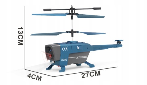 - Akcesoria: helikopter*1, zapasowe skrzydło*1, kabel USB*1, pilot*1, angielska instrukcja*1