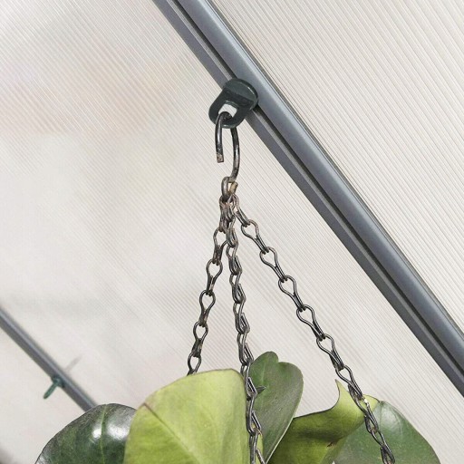 - Może być używany do mocowania tkaniny zacieniającej i drutów do wewnętrznej ramy szklarni. Może być również używany do wieszania małych koszy lub doniczek.