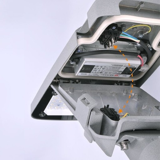 Solight WPS-60W-004 Lampa uliczna SMD, 60W, 9000lm, Meanwell, 4000K, 120°, IP65, 110-240V, szara Parametry produktu: - 60W - strumień świetlny: 9000lm (+/- 5%) - Wydajność: 150lm/ W (+/- 5%) - Diody LED: Philips Lumiled 5050 - Zasilanie: Meanwell - Temperatura światła/chromatyczność: 4000K (neutralna biel) - Żywotność diod LED: 50 000 godzin (LM80) - Kąt świecenia: 120° - Nachylenie lampy: + /- 15° - Łatwy i bezpieczny dostęp do źródła zasilania bez użycia narzędzi - bezpiecznik: przerwa w dopływie światła po otwarciu pokrywy - współczynnik oddawania barw: CRi>70 - współczynnik mocy: 0,95 - stopień ochrony: IP65 (pyłoszczelny) i wodoodporne) - materiał: kute aluminium - zasilanie: napięcie wejściowe: AC 85 - 265 V - napięcie wyjściowe: DC 27 - 65 V, 2,1 A - Temperatura pracy: -30°C do +60°C - wymiary: 577 x 233 x 103 mm - średnica otworu montażowego na maszcie: 70 mm - klasa energetyczna: A++ - brak możliwości wymiany poszczególnych źródeł LED - kolor: szary - opakowanie: pudełko - 5 lat gwarancji
